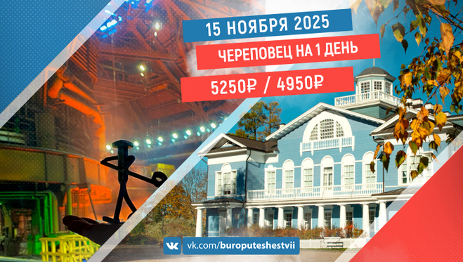 НОВИНКА!! Череповец: промышленный тур по центру металлургической промышленности "Северсталь", обед в кафе города, экскурсия в усадьбу Гальских